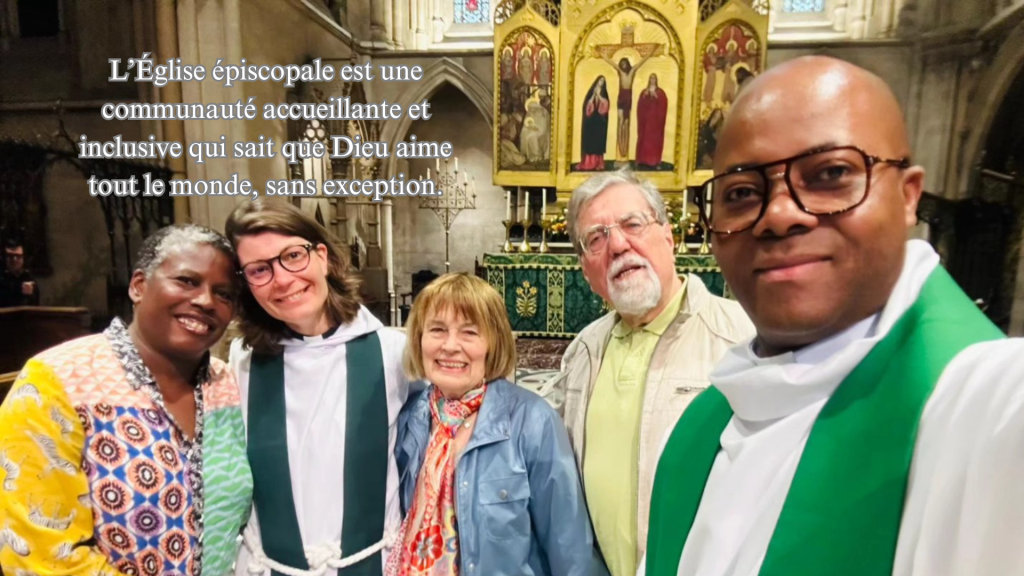 Nous croyons en l’enseignement de Jésus-Christ, dont la vie, la mort et la résurrection ont sauvé le monde. En tant que membres de l’Église épiscopale, nous avons un héritage d’inclusion, aspirant à raconter et à illustrer l’amour de Dieu pour chaque être humain ; des femmes et des hommes servent comme évêques, prêtres et diacres dans notre Église. Les laïcs et le clergé coopèrent à tous les niveaux de notre Église. Le sacerdoce est un don de Dieu et peut être exprimé par toutes les personnes de notre Église, quelle que soit leur identité ou orientation sexuelle. Il en va de même pour les personnes que nous accueillons.